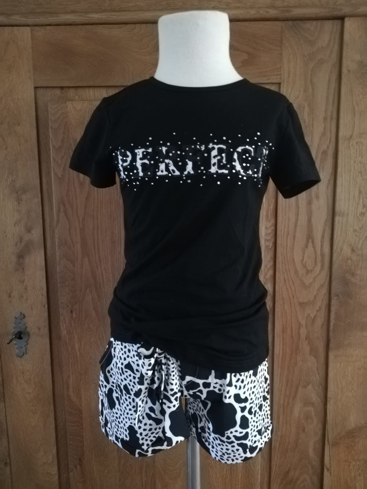 Zwart shirt met opdruk en cowprint broekje